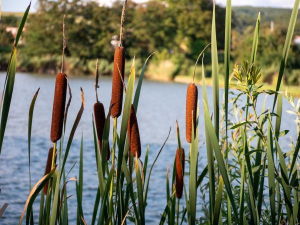 Grote lisdodde (Typha latifolia): Bekend om zijn opvallende kolven. Het is een sterke zuiveraar. Kan op 10 tot 30 centimeter diepte groeien.
